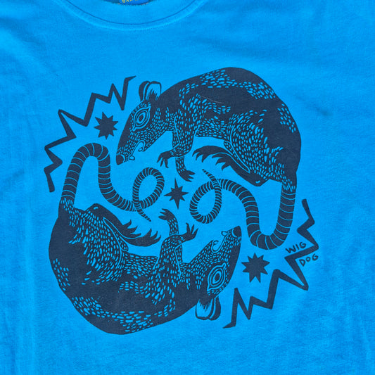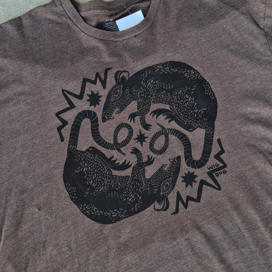 Our choice to print on thrifted tees not only allows us to share a diverse variety of clothing patterns, sizes, and color combinations, but also helps us keep already-made clothes in circulation. Each t-shirt is a unique brand and cut, and may show signs of gentle wear. Please carefully read each product description for notes on sizing details so we’ll ship you a tee you’ll love to wear!